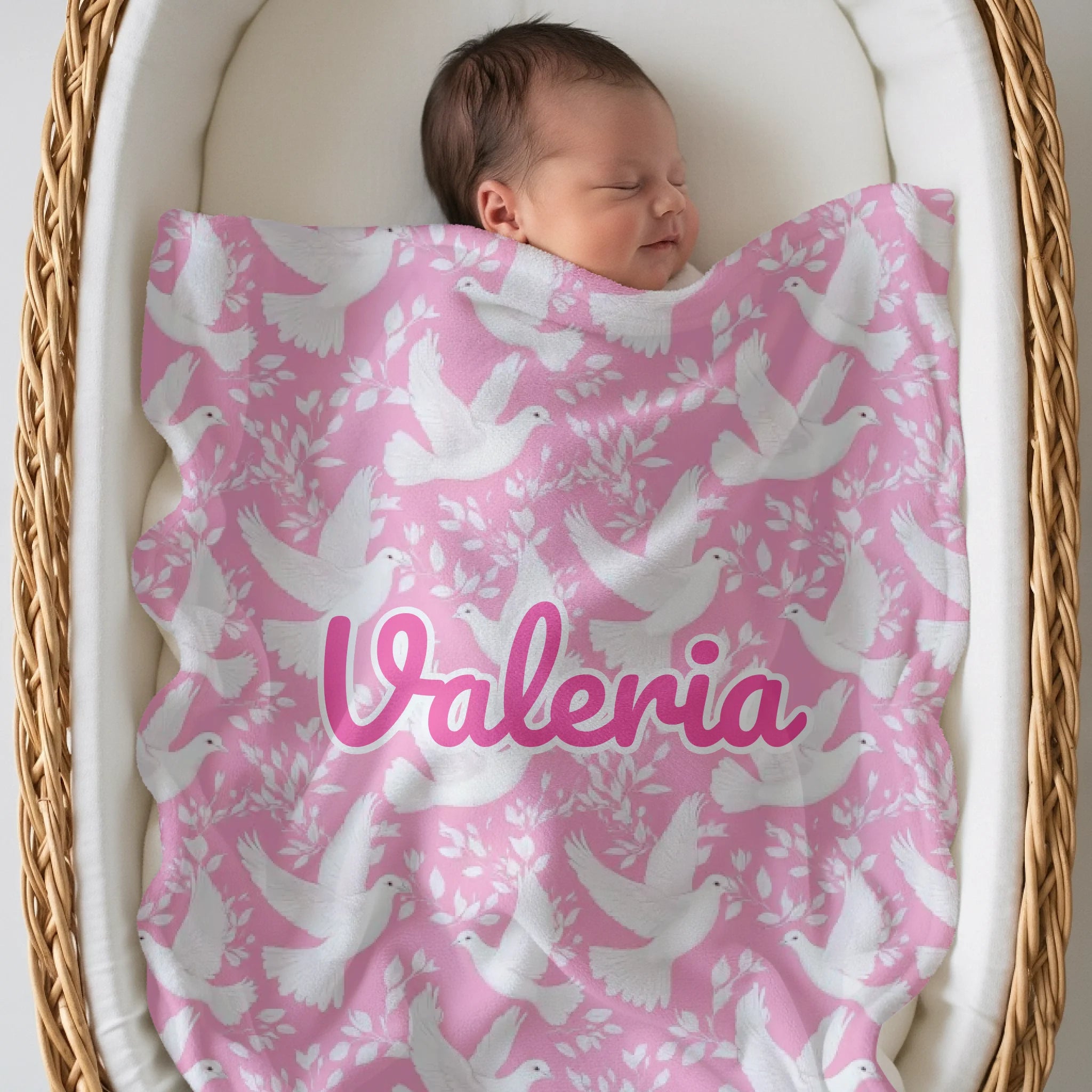 Soft gentle and full of meaning this pink dove blanket symbolizes love peace and faith. Designed to comfort your baby and reassure your heart.
